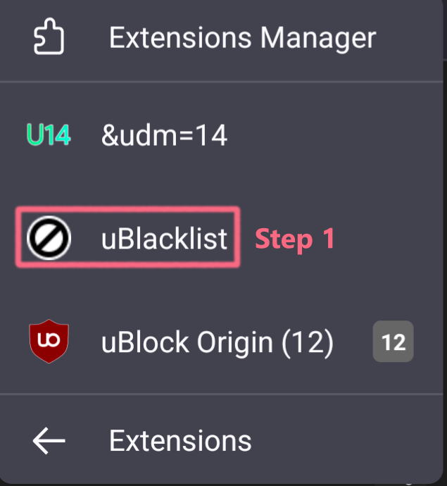 For the rest of our guides, we will need to navigate to the options for our extensions. These steps are nearly identical for all extensions. For example, to configure uBlacklist: