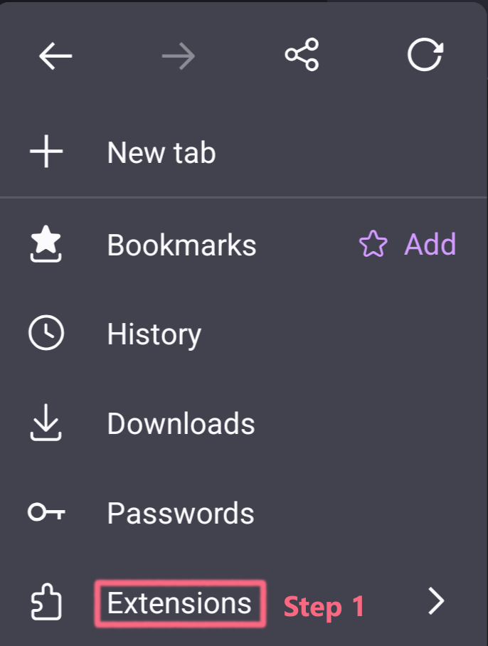 Once enabled, go back to the menu shown when clicking the URL bar, and click the extension: