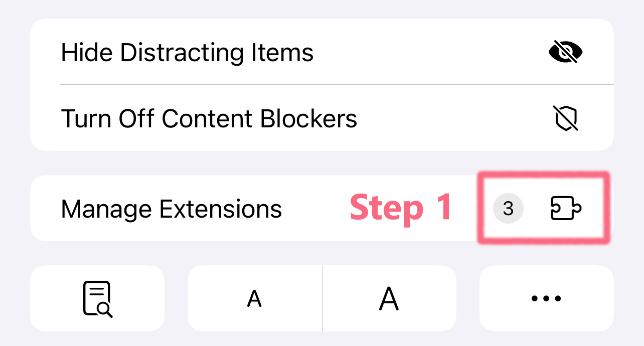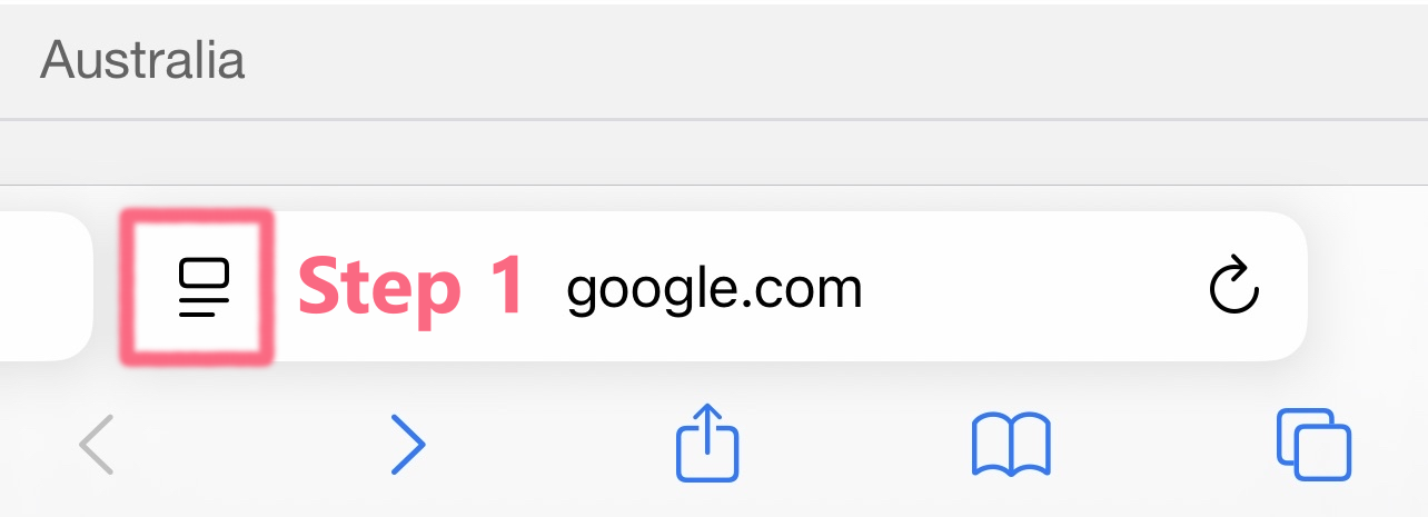 Open Safari and click the icon next to the URL to go to the browser settings: